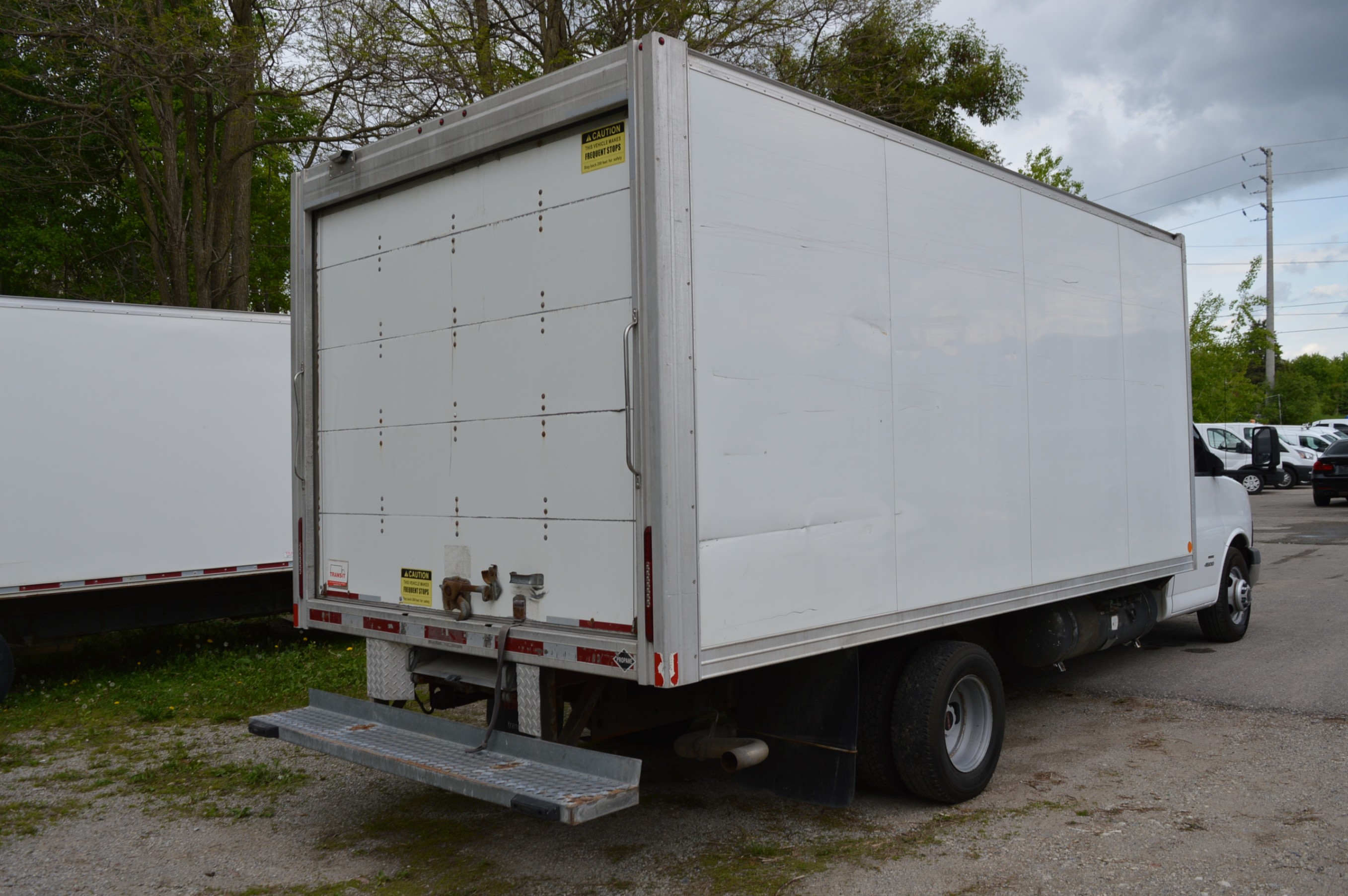 GMC Savanna 4500 Cube van in good shape with loading ramp. 16 footer Aluminum Box, 7.5 feet width, 6.6 feet height. Comes with a 6.0L 8Cyl engine, Air Conditioning and Much More. GVWR is 6,441kg or 14,200 lb. Flex Dual Fuel, Gas and propane.